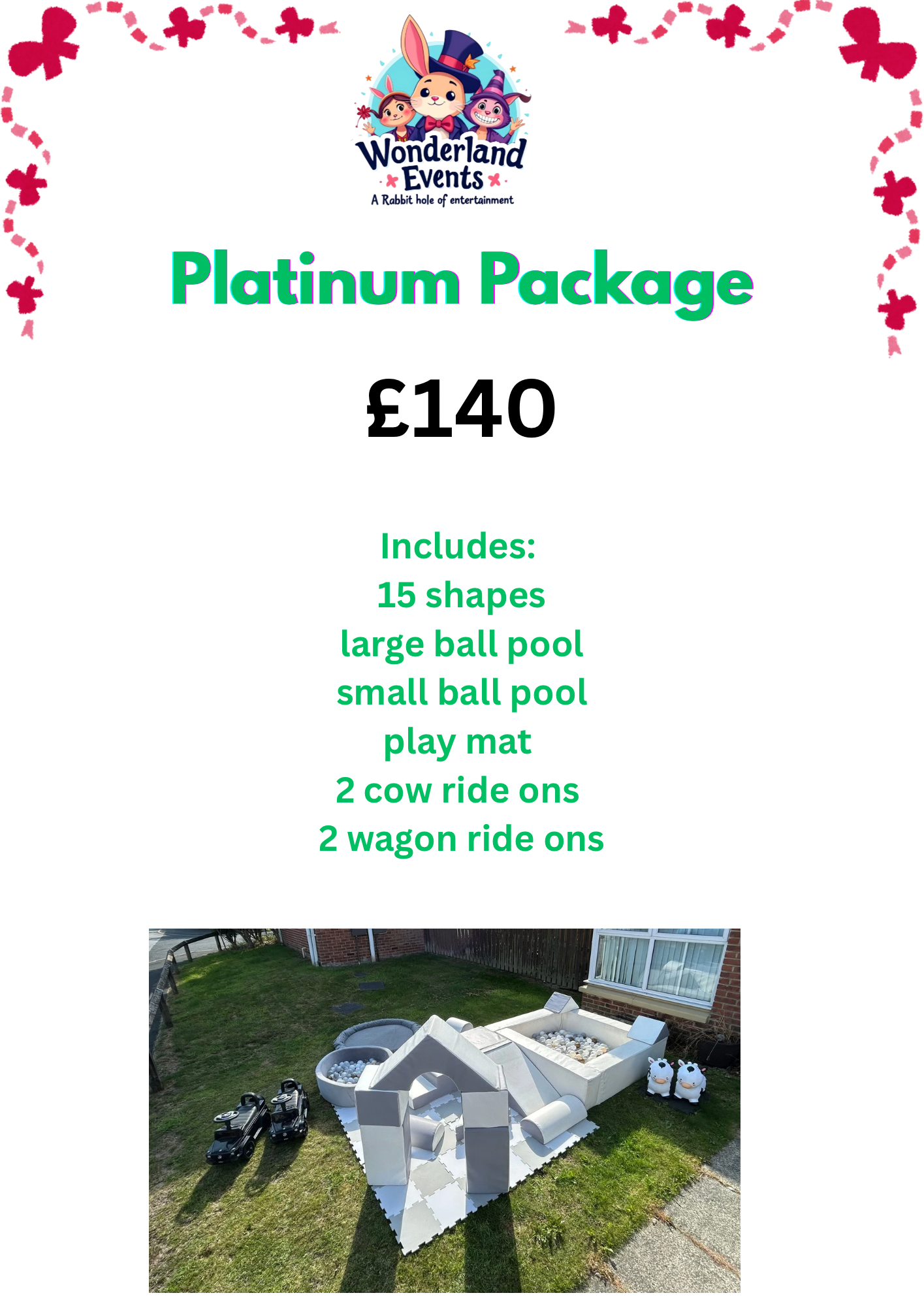 At Wonderland Events LTD, we understand that every party is unique. That's why we offer a variety of soft play packages, from basic setups to platinum experiences, ensuring there's an option to fit every budget. Each package is designed to provide hours of entertainment and safe play for your little ones.